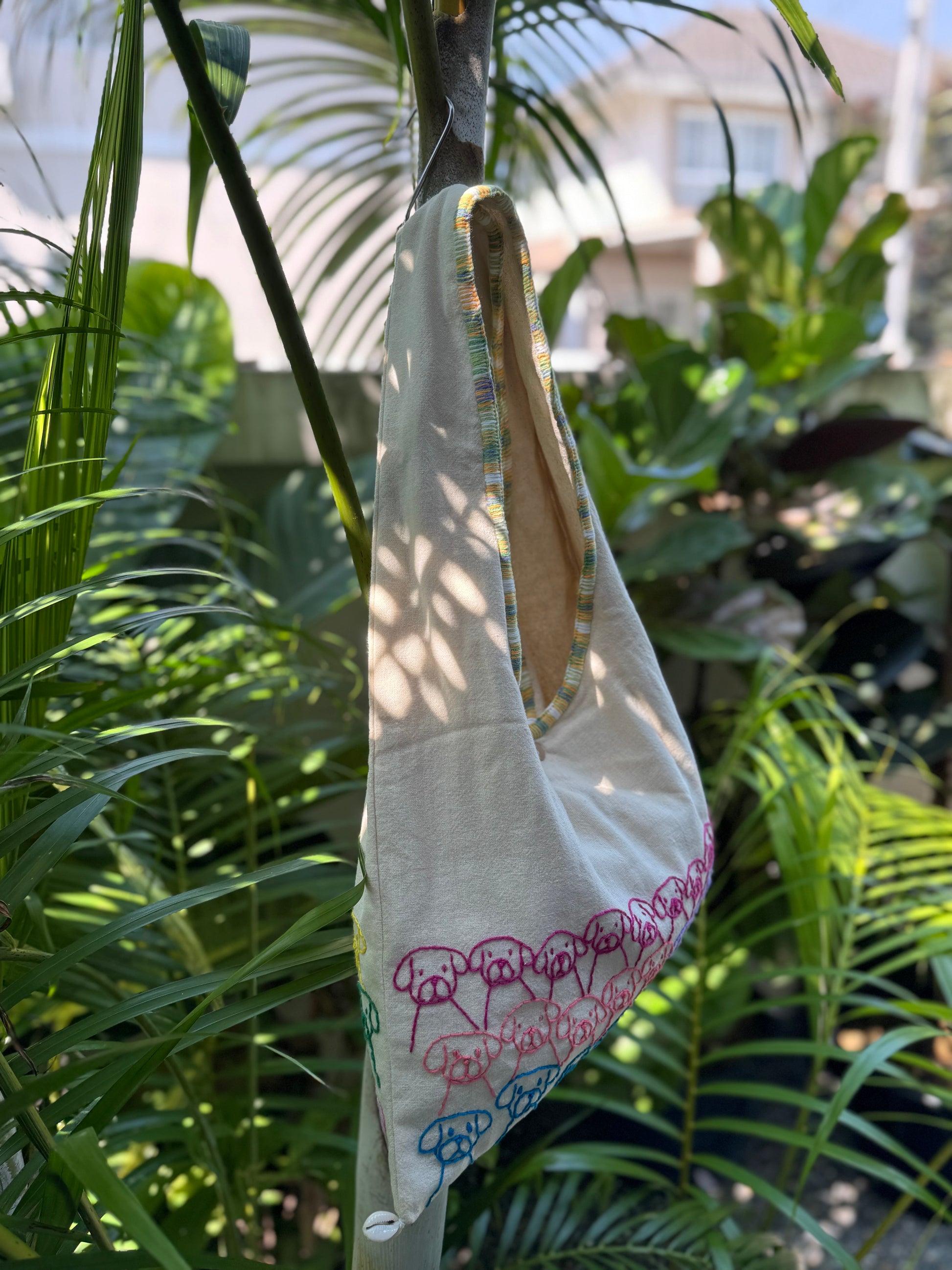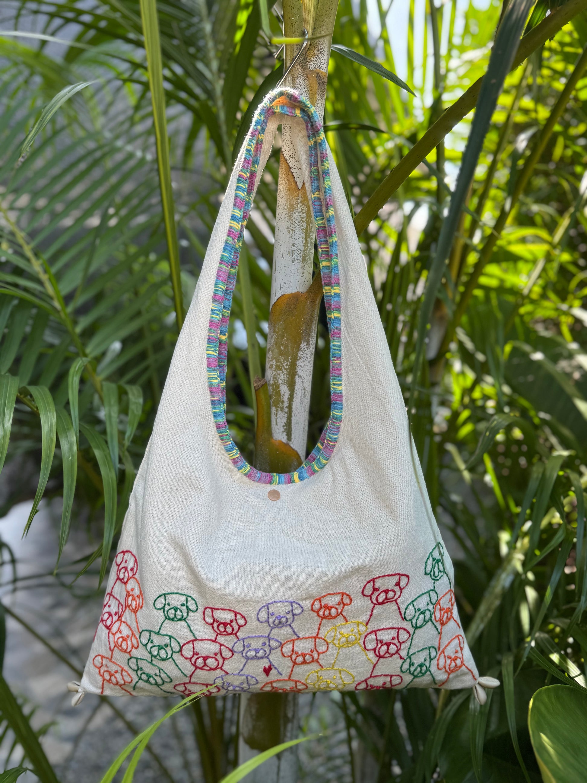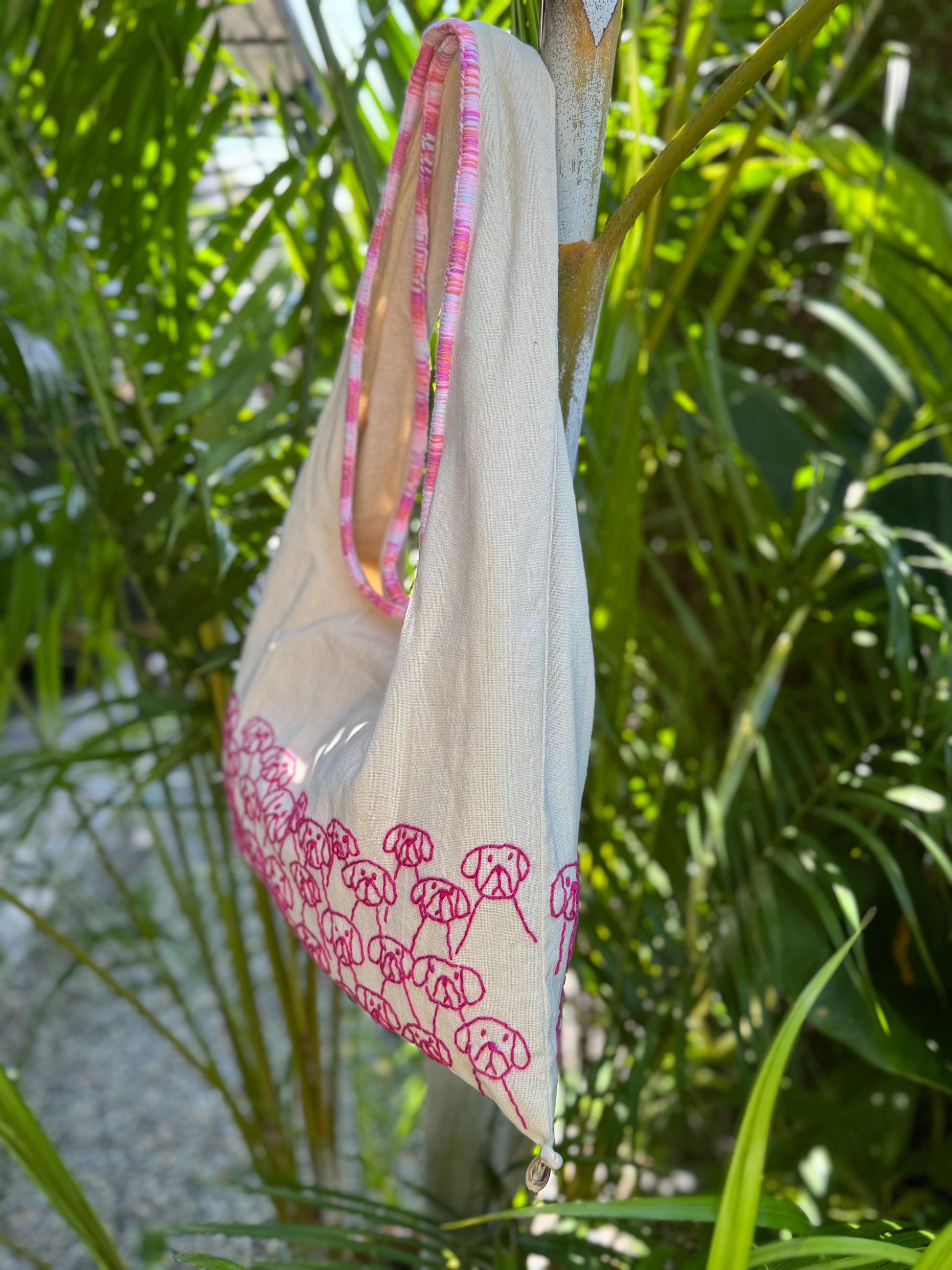 Handmade bag | Small Wristbag | Hand Stitching | Single shoulder bag | Bento bag-dog