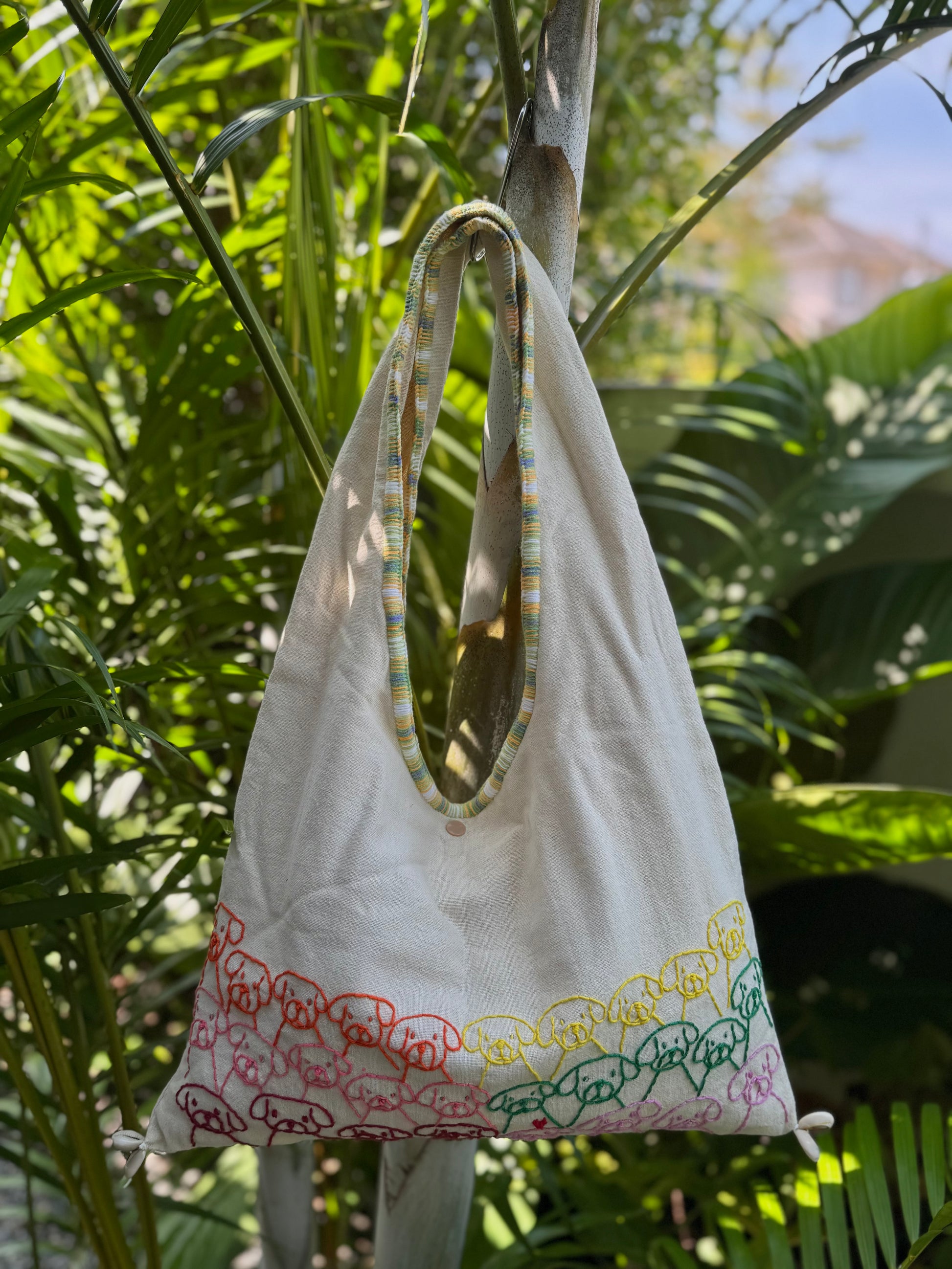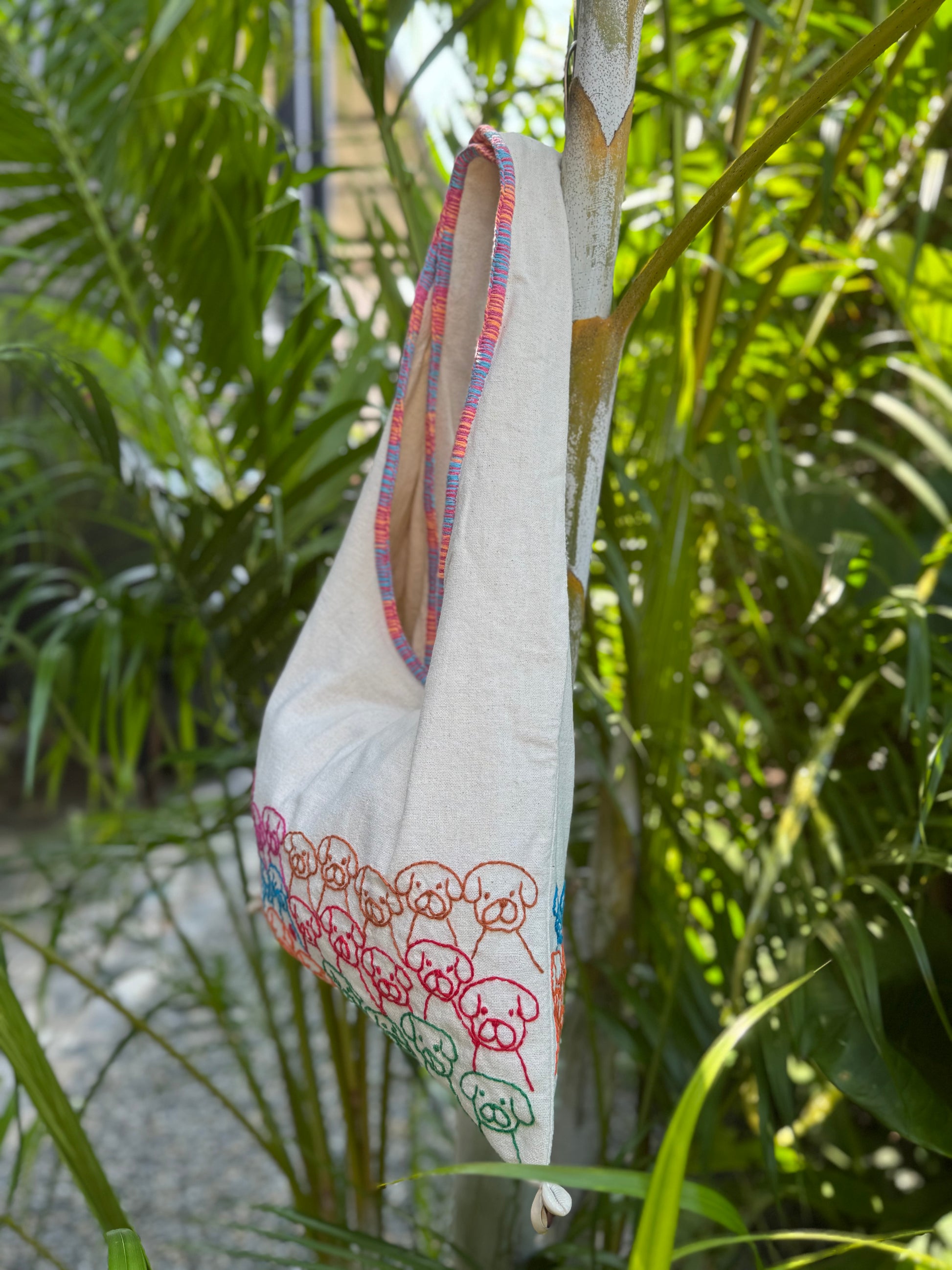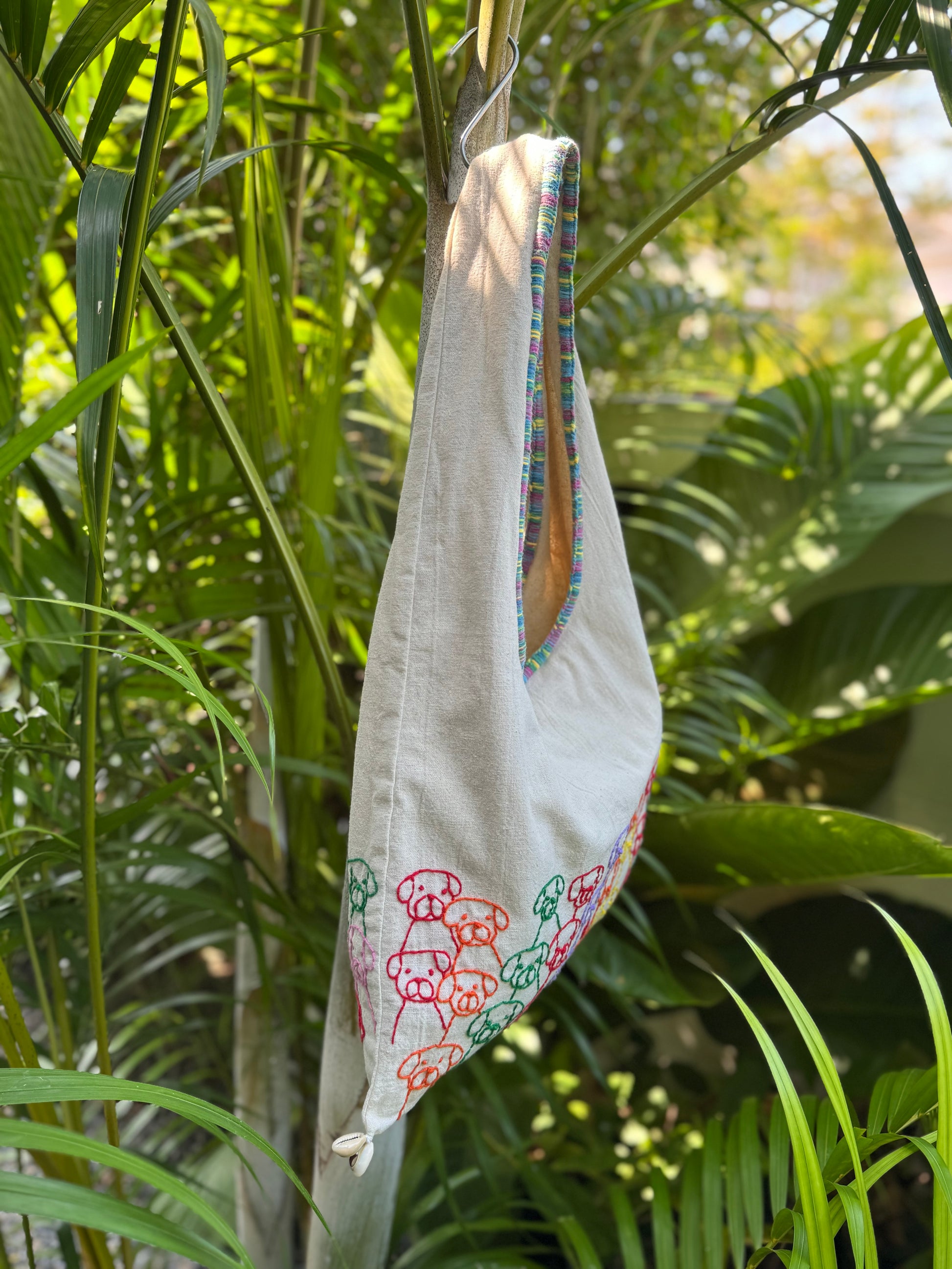 Handmade bag | Small Wristbag | Hand Stitching | Single shoulder bag | Bento bag-dog