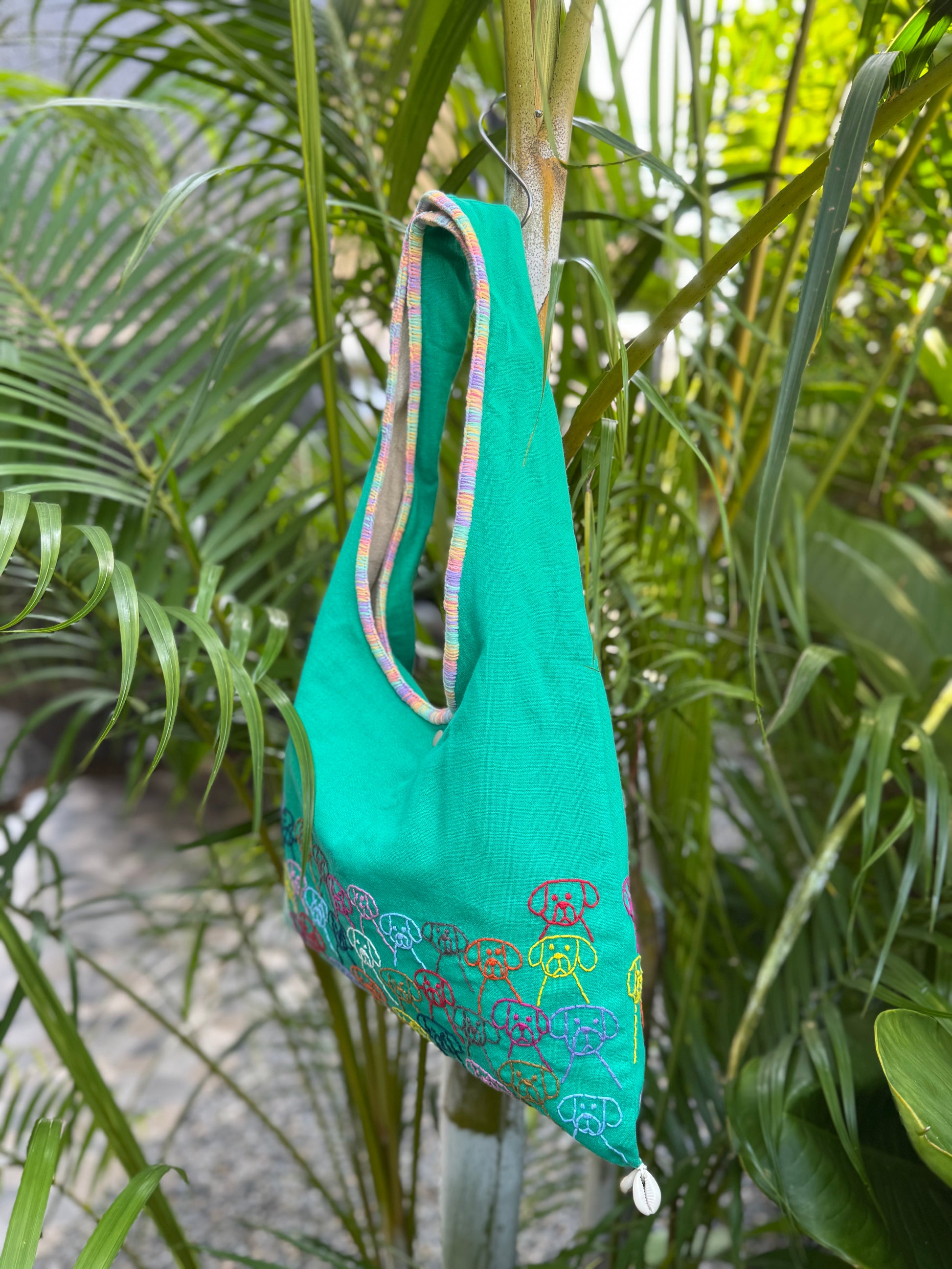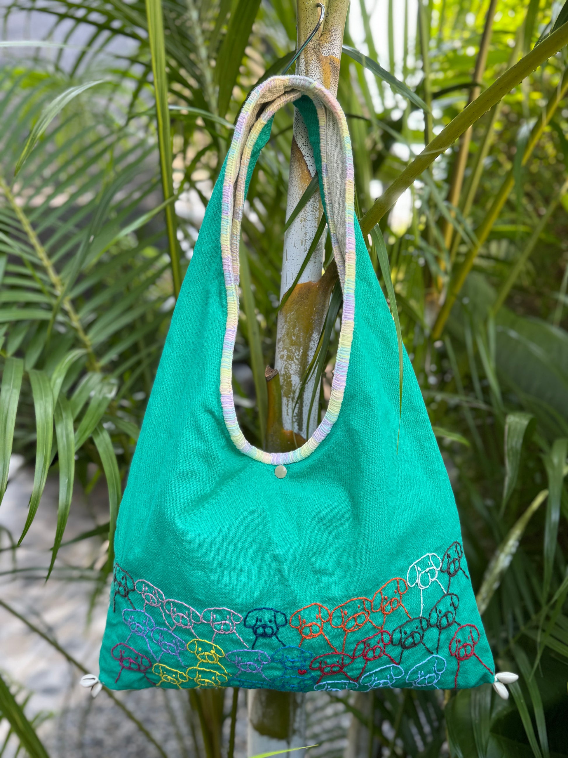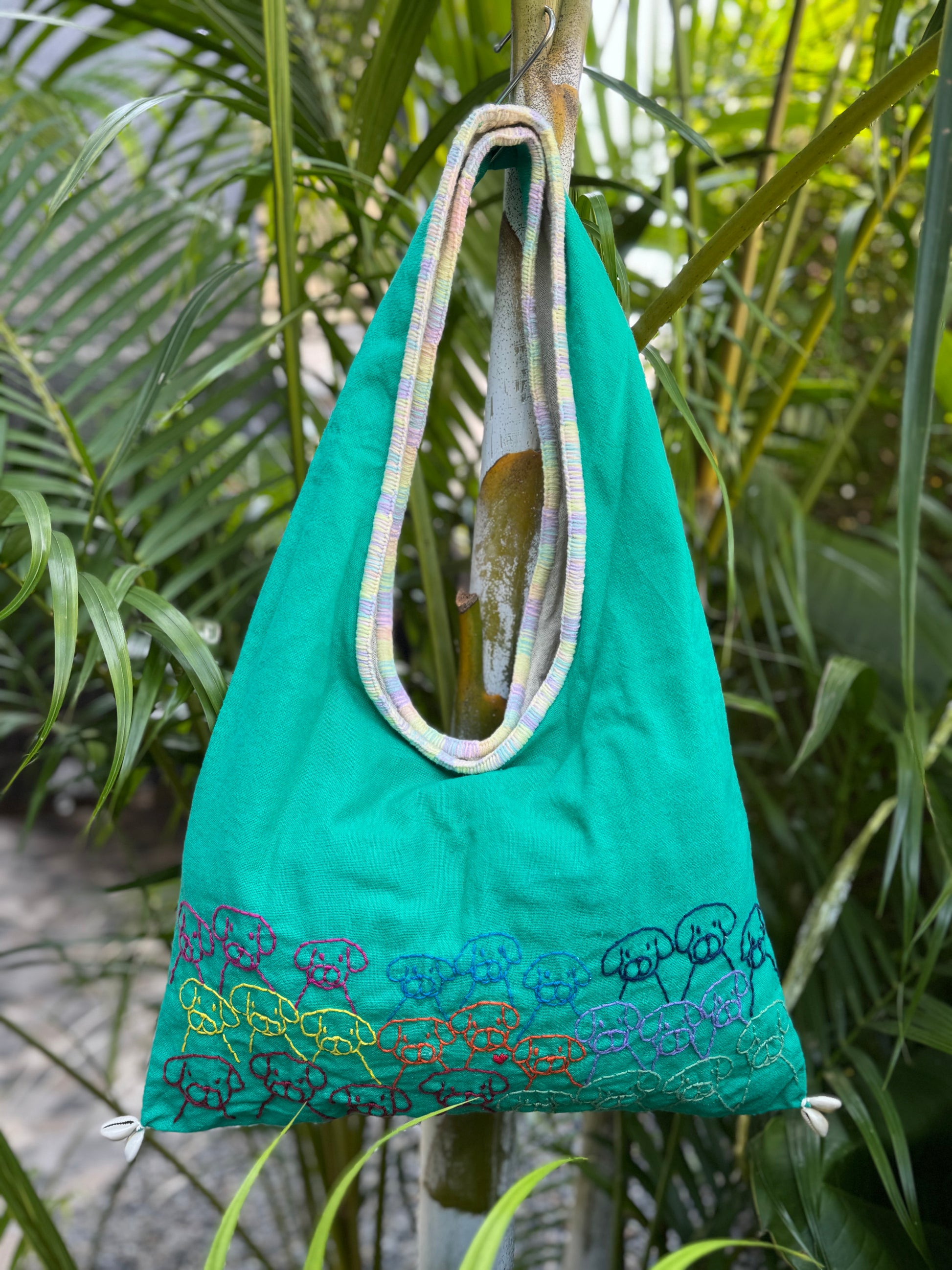 Handmade bag | Small Wristbag | Hand Stitching | Single shoulder bag | Bento bag-dog