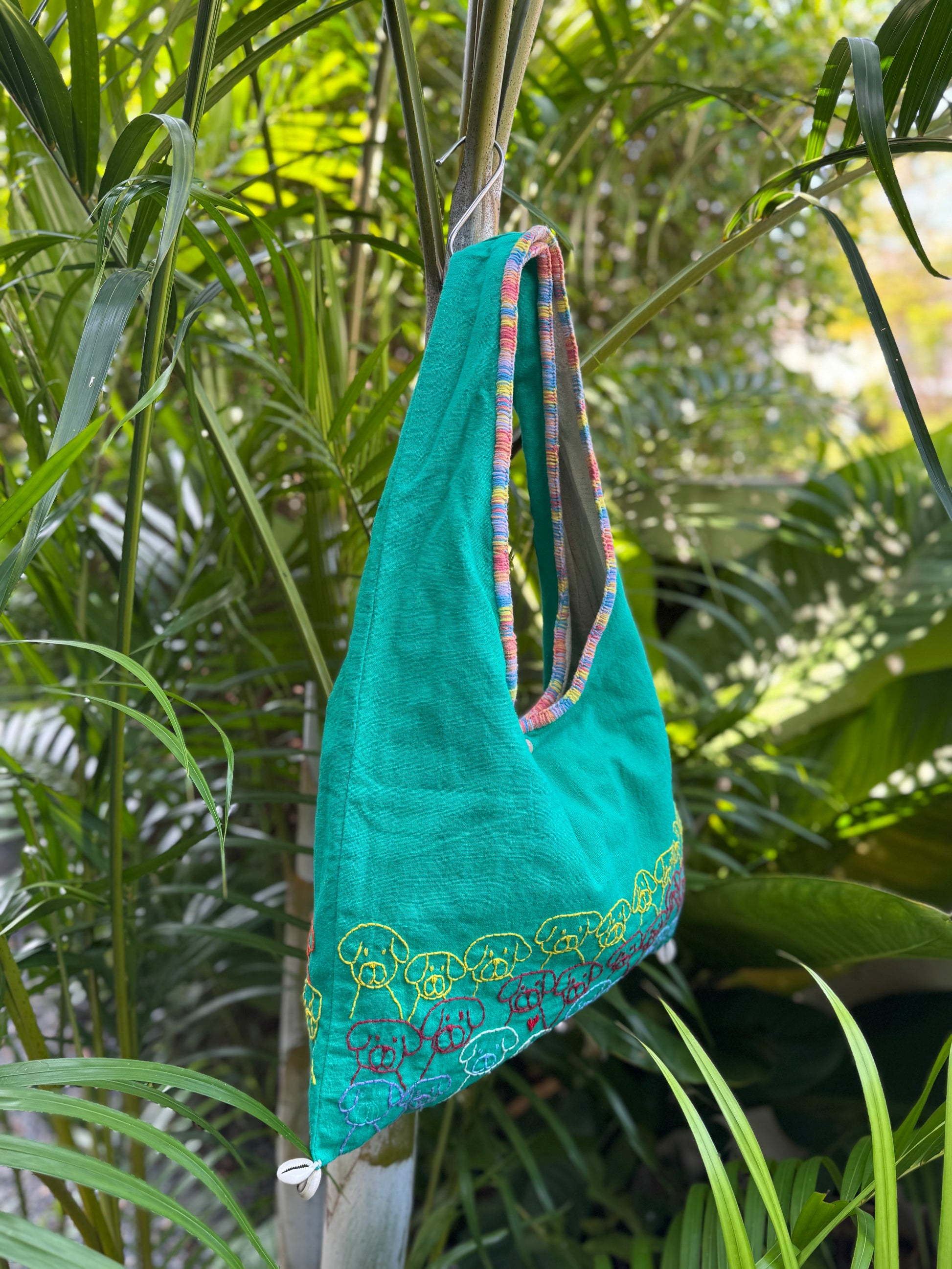 This handcrafted bag is the perfect addition to your collection. This medium-sized bag has a brightly colored exterior and is made of cotton .This bag comes with a shoulder strap made of different embroidered patterns, making it comfortable to wear for long periods of time. The unique feature of this bag is the stitching decoration, which adds a touch of elegance to the overall design. This handbag is perfect for women who like to add a touch of color to their outfits. This bag is printed with Siam branding and is perfect for everyday use.